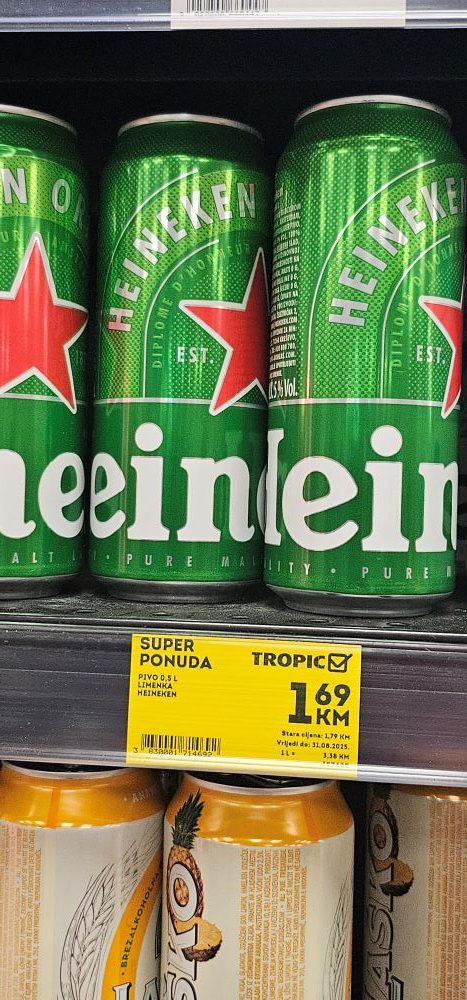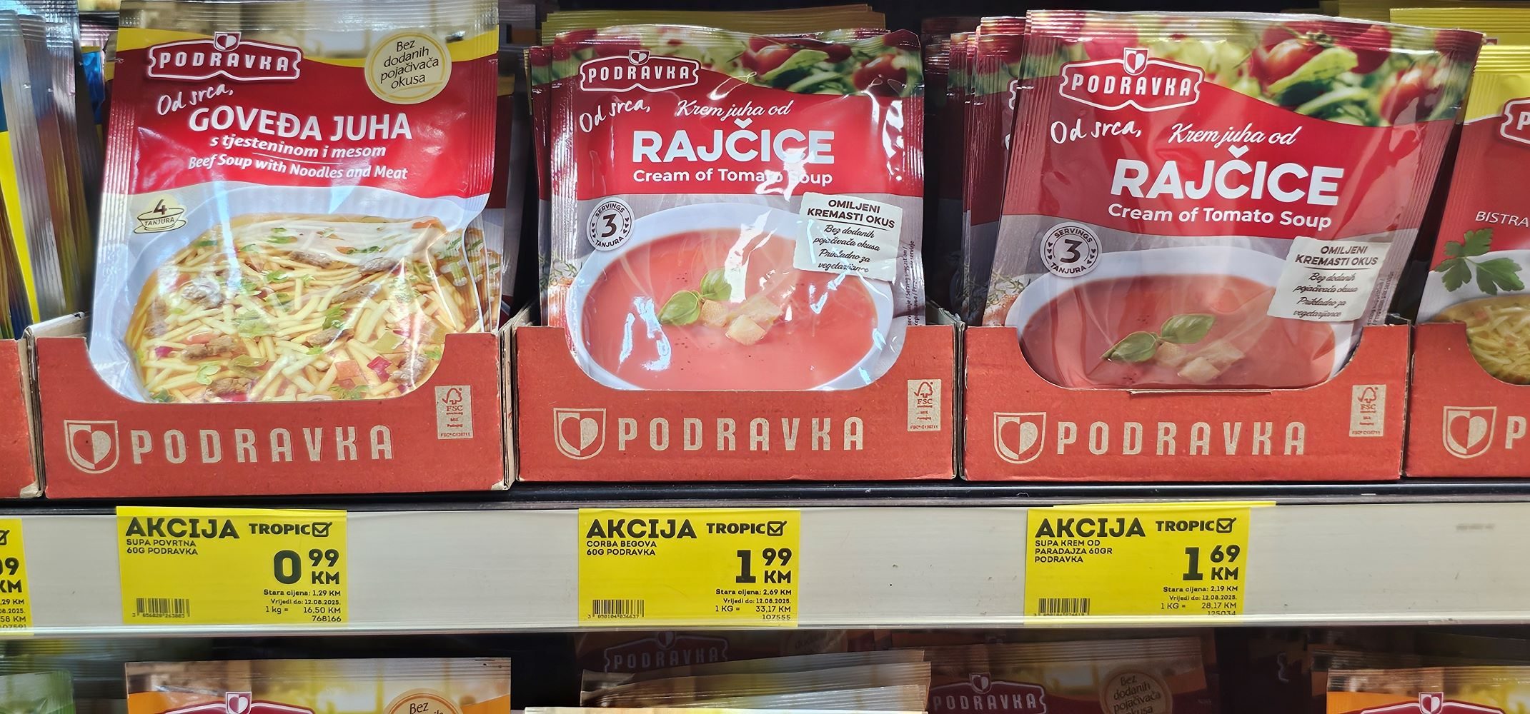 Fotografije pokazuju cijene iz trgovine Tropic iz Hrvatske Dubice iz kolovoza 2025.godine